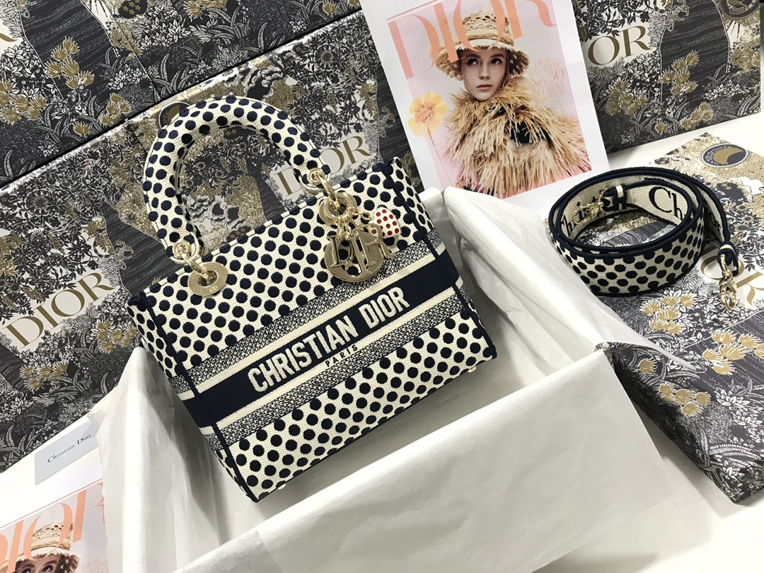 MEDIUM D*0r LADY D-LITE BAG polka dots 24 x 20 x 11 cm